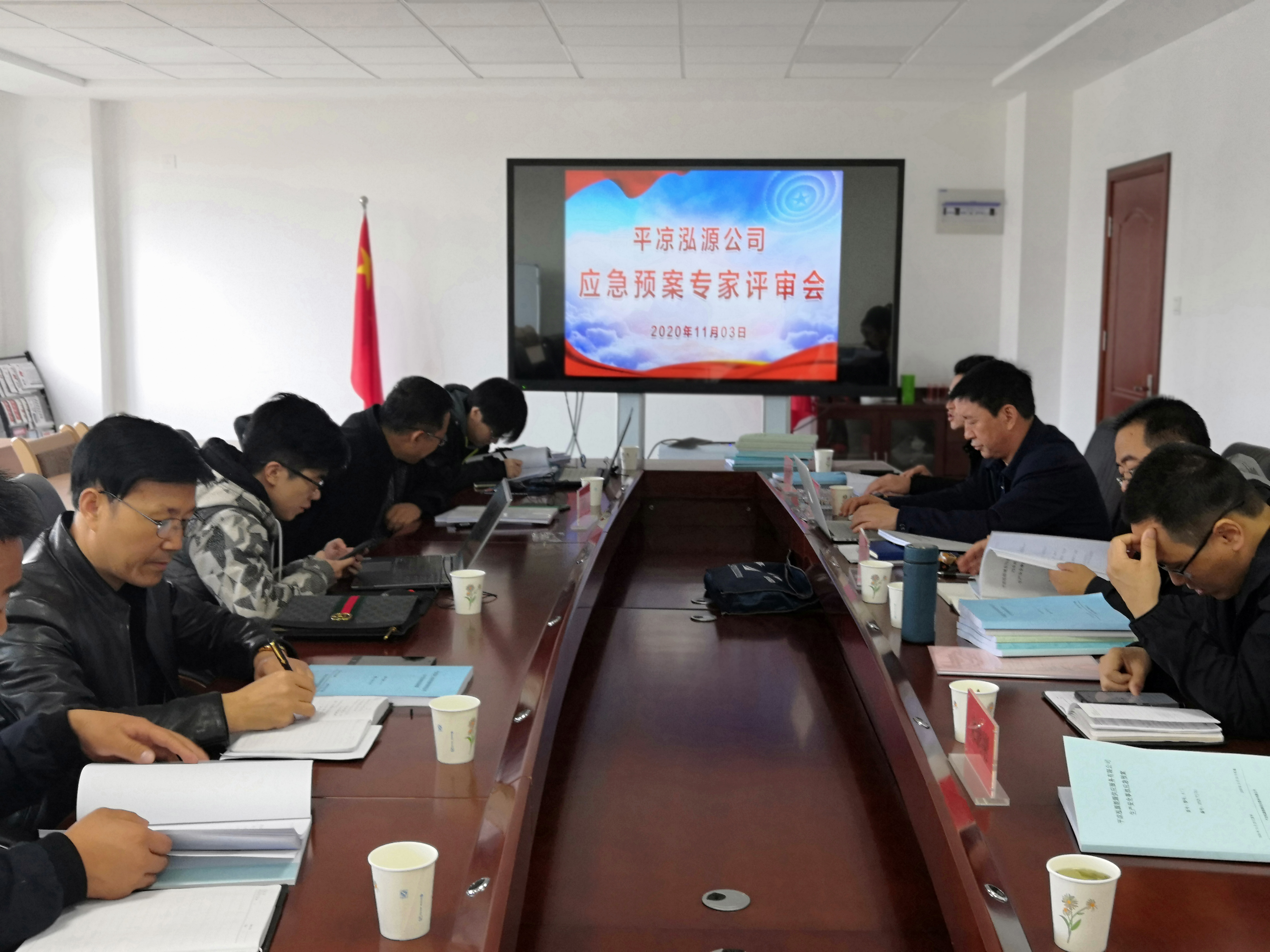 2020-11-0311月3日,泓源公司召开生产安全事故应急预案专家评审会,邀请兰州中诚信工程安全咨询有限责任公司、平凉工业园区应急管理局及消防、安全专业专家组成评审组,对泓源公司、泓源能源供应公司、泓润物业公司、泓源城东污水处理公司生产安全事故应急预案进行